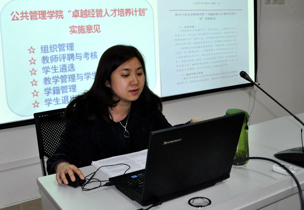 本次活动主要是对行政管理专业卓越经管人才教育培养计划的研讨。冯媛媛老师详细讲解了卓越经管人才培养的计划,一是制定实用型人才培养标准(个人要素、专业知识、职业技能),二是构建双塔式人才培养体系(强化实践教学、改进理论教学),从而培养出新时期社会治理需求的优秀人才。她还重点阐述了人才培养的四个方法,第一,优化课程教学体系,优化和改进教学培养方案。第二,培养双师型、双能型教学团队。第三,全面提升教学实践质量。第四,实施“3+1”教学培养模式,贯彻理实一体,校社互动的理念。最后,参会领导和老师就行政管理专业卓越经管人才培养项目的培养目标、课程设置、实践教学等方面提出了很多宝贵的建议。本次活动圆满结束。