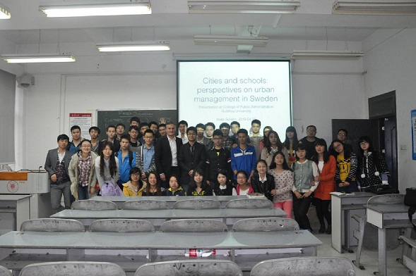 2015年4月21日下午16:30-18:30,公共行政学系杨志军老师邀请瑞典籍学者Mats Sundin博士为城市管理专业和行政管理专业的本科学生作了以“城市和学派:瑞典的城市管理视角”为主题的学术交流活动。