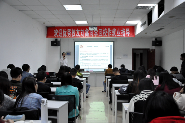 本网讯( 新闻中心 李科庆 报道|摄影 李石磊)11月20日晚,优秀校友刘鑫应邀回校,于北区信息楼710会议室为我院同学作就业指导报告会,我院50余名研究生参加了此次报告会。本次报告会意在拓宽同学们的视野,让同学们知道:在忙什么?怎么忙?朝什么方向忙?