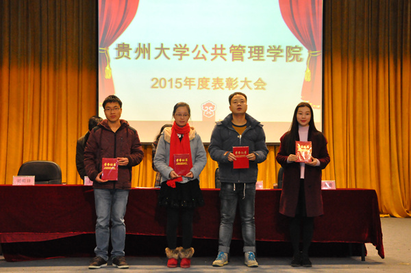 会议伊始,刘明锋副书记首先介绍了到场的各位领导和嘉宾。大会在庄严的国歌声中正式开始。工作人员宣读表彰名单后,李波书记、许鹿副院长、王志凌副院长、靳永翥副院长为校院级三好学生、优秀学生干部、文体积极分子及优秀党支部部员、优秀共产党党员、优秀社会实践个人和团体颁发荣誉证书,此外,大会还特别公布了学习贯彻党的十八届五中全会精神征文比赛的获奖名单。颁奖仪式末尾,获奖代表张爽发言:“展望未来,我们将继续培育与践行中国梦、贵大梦、公管梦,始终立足学生发展需求,带领全院同学实现各类价值。”