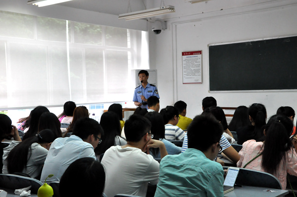 本网讯(新闻中心 胡顺书 报道|摄影 王金利)大学生是一个成年群体,有着不同于社会其他群体的心理和行为,又尚未获得真正的独立,社会经验的锻炼受到很大的制约,一旦受骗对个人生活会有很大的影响。为加强学生对诈骗手段的了解,强化自身的安全意识。5月6日下午,我院邀请到了花溪分局李天俊警官在博学楼224教室为学生作防诈骗常识宣传。