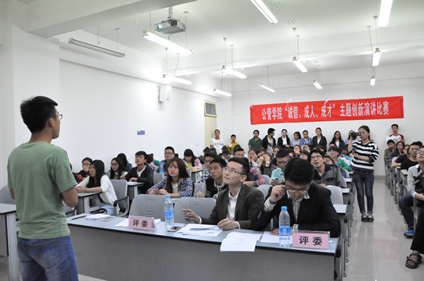 荣获第二名的是城管131班李丹姣和城管131班黄梦麟做的题为“成则立,立则达,达则兼济天下”的演讲;