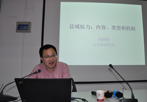 本网讯(研会宣传部 王青 报道|摄影 张胜禹)5月25日晚上7:30,贵州大学公共管理学院第六期“日新”学术沙龙——青年教师论坛在慎思楼710室召开。此次论坛有幸邀请到我院青年教师胡赣栋老师作题为:《县域权力——内容、类型与机制分析》的讲座。参加此次讲座的有研究生和本科生共计100余名同学。