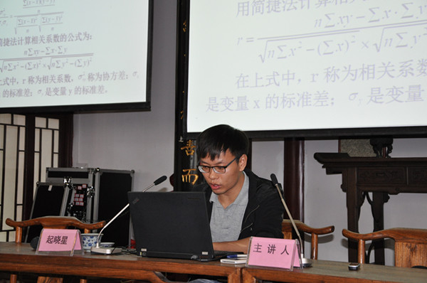 6日上午,起晓星博士为大家带来“几种常见的定量分析方法及应用”一课。关于如何作研究,其最核心的环节就是对数据资料进行分析。定量分析法可以使人们对研究对象的认识进一步精确化,以便更加科学的揭示规律,把握本质,理清关系,预测事物的发展趋势。而不同于定量分析的定性分析主要关注“质”的分析,对获得的各种材料进行思维加工、由表及里、从本质上揭示规律。由于定量分析在我国研究方法中一直占有很大的比重,了解各个分析方法适用的数据背景对呈现好的分析结果有重要的意义。起晓星博士采用案例讲解的方式从统计分析、层次分析、预测分析等方面为大家讲述了各个分析方式的主要内容及优缺点。此外,他还补充了现在研究中常用的一些新方法,强调“新方法解决老问题”。
