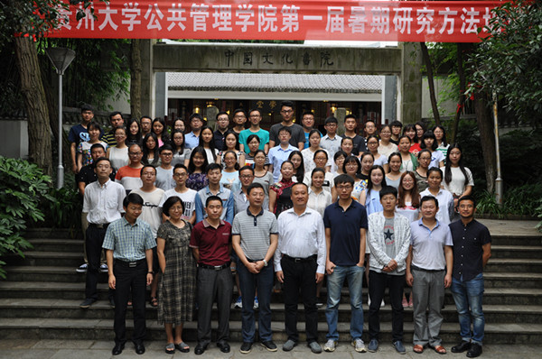 本网讯(新闻中心 杜扬 李贝贝 张立力 胡顺书 报道|摄影 梁源 李石磊 杜扬)7月5日上午,贵州大学公共管理学院第一届暑期研究方法培训班在中国文化书院勉学堂成功开班并举行开班仪式。中山大学政治与公共事务管理学院叶林教授和中山大学起晓星博士出席本次暑期研究方法培训开班仪式,并主讲了为期两天的研究方法课程。学院院长黄其松,副院长许鹿、靳永翥,MPA教育中心主任汪磊及段忠贤等老师出席开班仪式。其外,60余名研究生参与培训并聆听讲座。