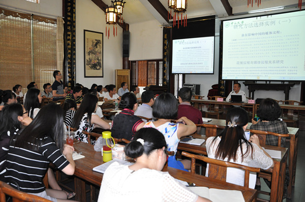 培训班每天分为上午和下午两场。5日上午8时30分,会议首先进行了暑期研究方法培训班的开班仪式。流程结束后,到访来宾同院领导及研究生在文化书院前合影留念。9时,培训班正式开讲。