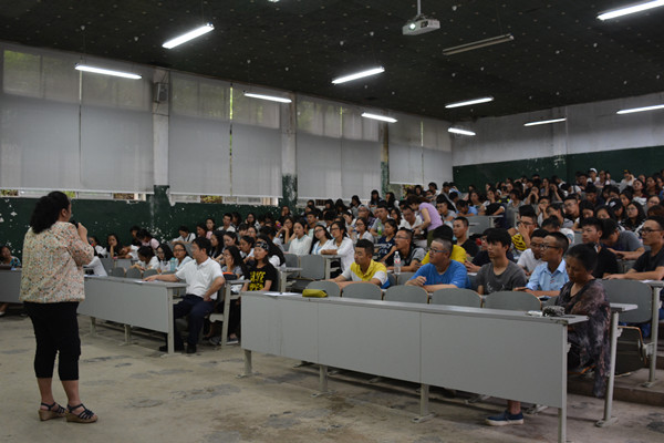 本网讯(新闻中心 杨贵园 报道|摄影 杨清清) 7月18日中午,公共管理学院2015级学生见面会暨年级大会于北区法学楼111D教室举行,公管学院党委书记李波,院长黄其松,党委副书记刘明锋,副院长靳永翥,各系主任及2015级公管学院270余名同学参加了见面会。