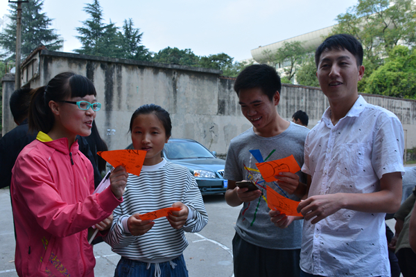 活动期间,崔永霞老师召集同学们玩了一个“一块五毛”的游戏。其中男生代表五毛钱,女生代表一块钱,崔老师说一个数字,同学们自由组合,组合得到的数字与之相同则安全,不同则接受相应的惩罚。在同学们的积极性被带动起来之后,活动顺利过渡到第二环节,第二环节为班级游戏环节,策划者提前将所有班级的同学随机分组,共十五组,每组十五人,活动开始后,各组自觉按照相应的游戏规则依次完成各个班级的班级任务,其中政治151班组织的数卡片游戏,劳保151班的萝卜蹲游戏,社工151班的运气球游戏得到了同学们的一致好评。