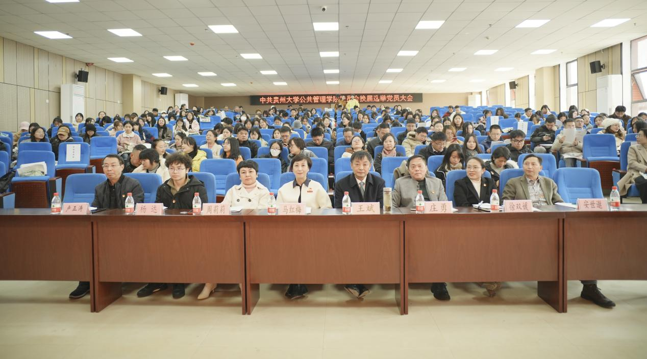 2025年1月5日,贵州大学公共管理学院在崇德楼报告厅召开中共贵州大学公共管理学院委员会换届选举党员大会,公共管理学院第二届全体党委委员、全体党员出席大会,学院民主党派人士、无党派人士、退休教师代表列席大会。大会由学院党委委员、院长马红梅主持。