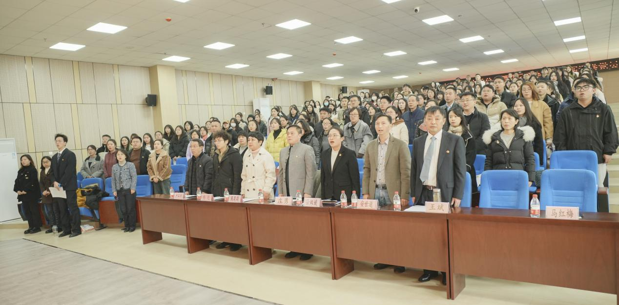 马红梅同志宣布中共贵州大学公共管理学院委员会换届选举党员大会开幕。随后,全体参会人员起立一同奏唱国歌。