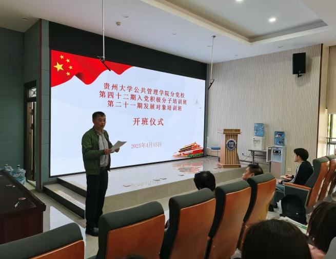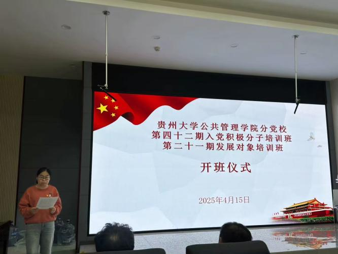 在春风拂过的校园里,2025年4月15日,贵州大学公共管理学院第四十二期入党积极分子培训班暨第二十一期发展对象培训班开班仪式在雅正楼123隆重举行,入党积极分子和发展对象齐聚一堂,以青春之名,赴红色之约。