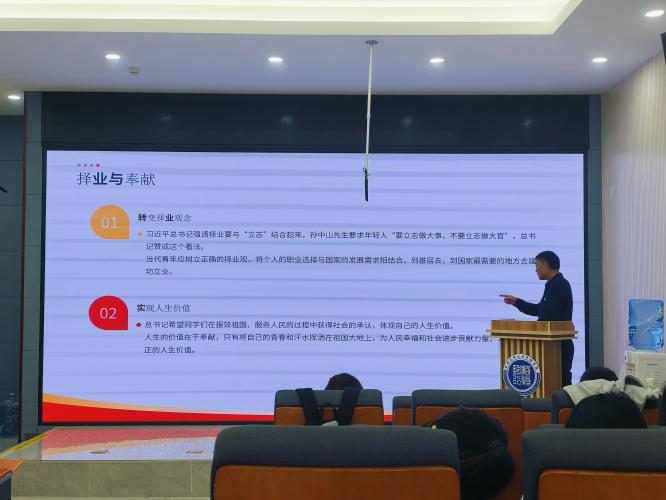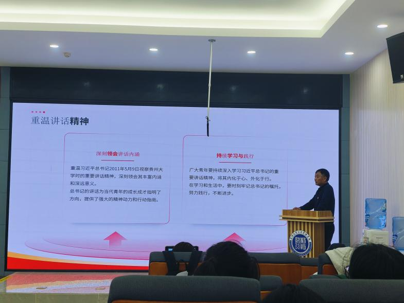 王斌书记重点阐述总书记对贵州发展的核心要点:高质量发展上,强调以实体经济为根基,强化创新驱动,发展战略性新兴产业;乡村振兴中,要求因地制宜发展现代山地特色高效农业,完善利益联结机制;生态保护与营商环境建设上,强调将生态优势转化为发展优势,优化营商环境;文化建设方面,要利用红色文化、民族文化优势增强文化自信、助推发展。这些要点为贵州发展指明方向,也为同学们专业学习、职业规划提供思路,同时激励同学们发挥专业优势,参与乡村振兴,认识生态与经济协调发展的重要性,传承弘扬优秀文化。