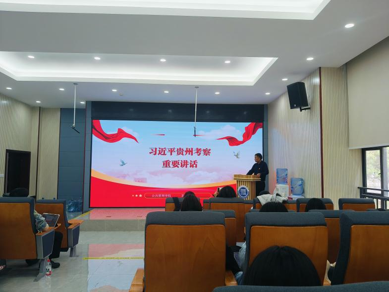 为深入学习贯彻习近平新时代中国特色社会主义思想,2025年4月29日,公共管理学院党委书记王斌同志组织学院学生党员和入党积极分子开展专题学习会,深入解读习近平总书记考察贵州重要讲话精神。此次学习会旨在引导同学们深刻领会讲话内涵,提升政治素养,增强使命感与责任感。