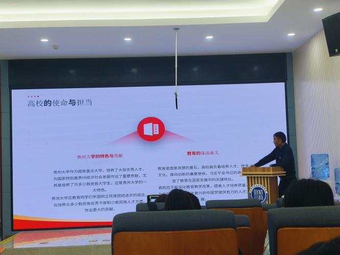 王斌书记着重强调,推动高质量发展,必须坚持党的领导、加强党的建设。党中央开展深入贯彻中央八项规定精神学习教育,是党建工作重点任务。同学们要增强纪律意识,以优良作风投身学习与工作。同时,贵州作为具有丰富红色文化资源的地区,长征精神和遵义会议精神是宝贵财富。王斌书记鼓励同学们传承红色基因,在新时代长征路上,坚定理想信念,勇于担当作为。