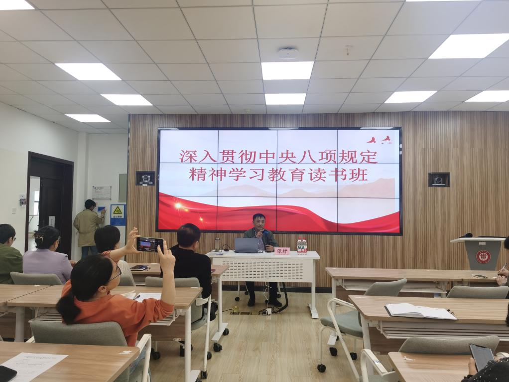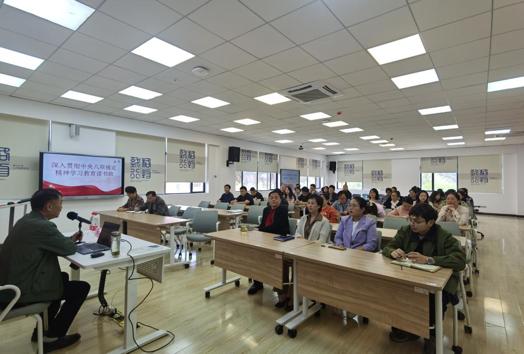2025年4月15日,贵州大学公共管理学院深入贯彻中央八项规定精神学习教育读书班开班。会议由贵州大学公共管理学院党委书记王斌同志主持,校纪委副书记张妤在读书班上作专题辅导报告,公共管理学院全体党员教师参加会议。