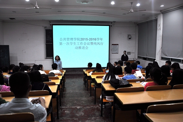 本网讯(新闻中心杜扬报道|摄影李石磊)为推进纯风运动建设,发展健康校园文化。9月13日晚,我院2015-2016学年第一次学生工作会议于北校区逸夫楼420教室召开。学生科崔永霞老师、第三届团委学生会干部及各班班委参加了本次会议。
