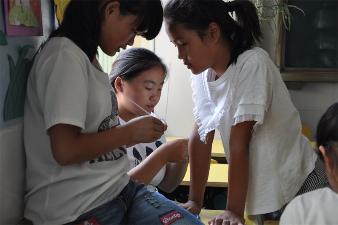 在绘画课上,队员带领小朋友学习绘画了各种小动物的简笔画,无论是大班还是小班的小朋友,都对绘画课程非常感兴趣,所以绘画课一直是比较受欢迎的课程之一。还有一门课程也是得到了小朋友们的热捧,就是手工课,通过手工制作把废纸变成纸玫瑰,青蛙,千纸鹤等工艺品,既环保又充满艺术气息,所以小朋友们都非常喜欢学习手工课。其次,舞蹈课也得到了不少小女生的青睐,队员帮小朋友们排练了《小苹果》,《巴拉拉小魔仙》,《大王叫我来巡山》和《感恩的心》等类型多样的舞蹈。而担任音乐课的老师都是年轻的大学生,了解小朋友们的想法,清楚小朋友们喜欢的歌曲类型,所以他们选择的歌曲也比较受欢迎,小朋友们学习起来挺认真。