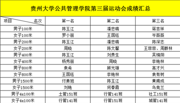 附:第三届田径运动会成绩表。